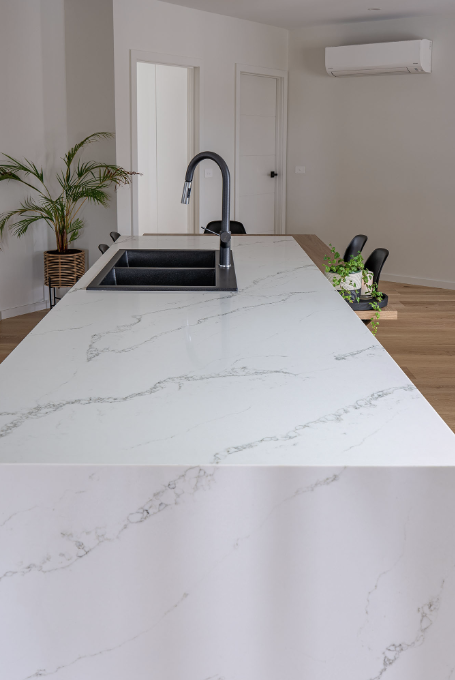 With its striking white base and intricate veins, Glacier embodies the essence of timeless elegance, exemplifying the perfect harmony of modern and natural elements in this meticulously crafted culinary haven.The delicate veining of Glacier added a dynamic texture to the kitchen, creating an inviting atmosphere that effortlessly combines modern sophistication with a touch of natural charm. The interplay of natural light with the Glacier’s reflective surface further enhanced the ambiance, creating a bright and spacious feel that invites culinary creativity and warmth for memorable gatherings.