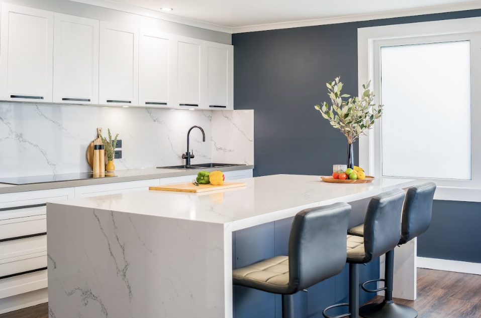 The juxtaposition of Glacier’s delicate veining with the cool kitchen tones established a captivating harmony, infusing the space with a contemporary yet inviting atmosphere. Felicity’s Kitchen stands as a testament to our commitment to seamlessly blend exquisite design with functional sophistication, creating a culinary sanctuary that transcends mere functionality and evolves into an aesthetic masterpiece.